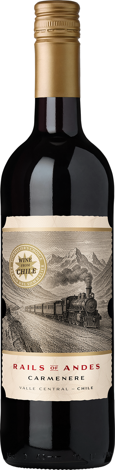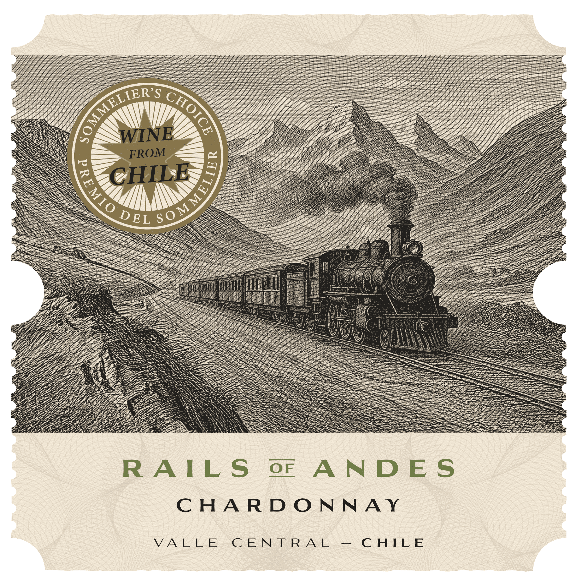 The label of Rails of AndesCarmenere and Chardonnay – wines from Chile refers to the historic Ferrocarril Transandino railway, which once connected Chile and Peru, crossing the majestic Andes.